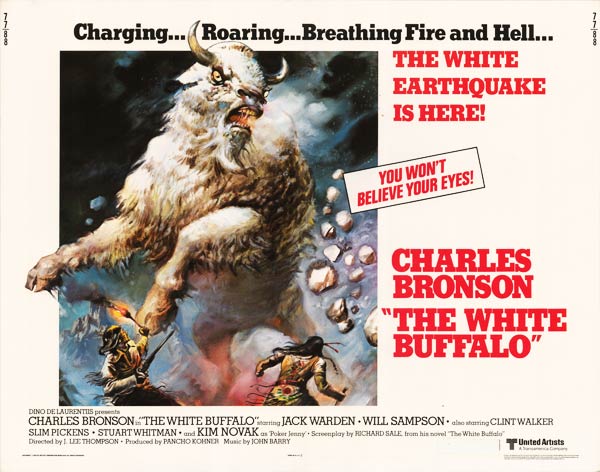 PT : I love THE WHITE BUFFALO. I remember being excited by the TV commercials and newspaper ads when it first came out. I didnβt get to see it when it was in theaters because it did not play near me. I had to wait until it played on TV under the title HUNT TO KILL. Iβve seen it many times since. It has an eerie, surreal quality to it. It was a costly flop when it was first released and it used to be considered a βbad movie.β But, as you said, it has been building a strong cult following among Bronson, Western, and monster-movie fans. I have done extensive research on the film and on the real-life Wild Bill Hickok and Crazy Horse. I will be doing an audio commentary track for a Blu-ray with a new 2K transfer that will be released in 2022.