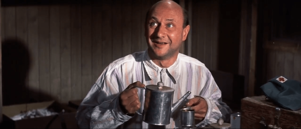 Donald Pleasence as Blythe, The Forger. “Tea without milk is so uncivilized.”