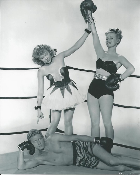 Closing it out here in Round 12 (if you’ve been keeping count of the ladies) let’s go with one of my favorite glamour gals of the golden age, Miss Virginia Mayo, opposite her frequent leading man, Danny Kaye, in 1946’s The Kid From Brooklyn. Here’s Vera-Ellen declaring Miss Mayo the champ in a gag shot.