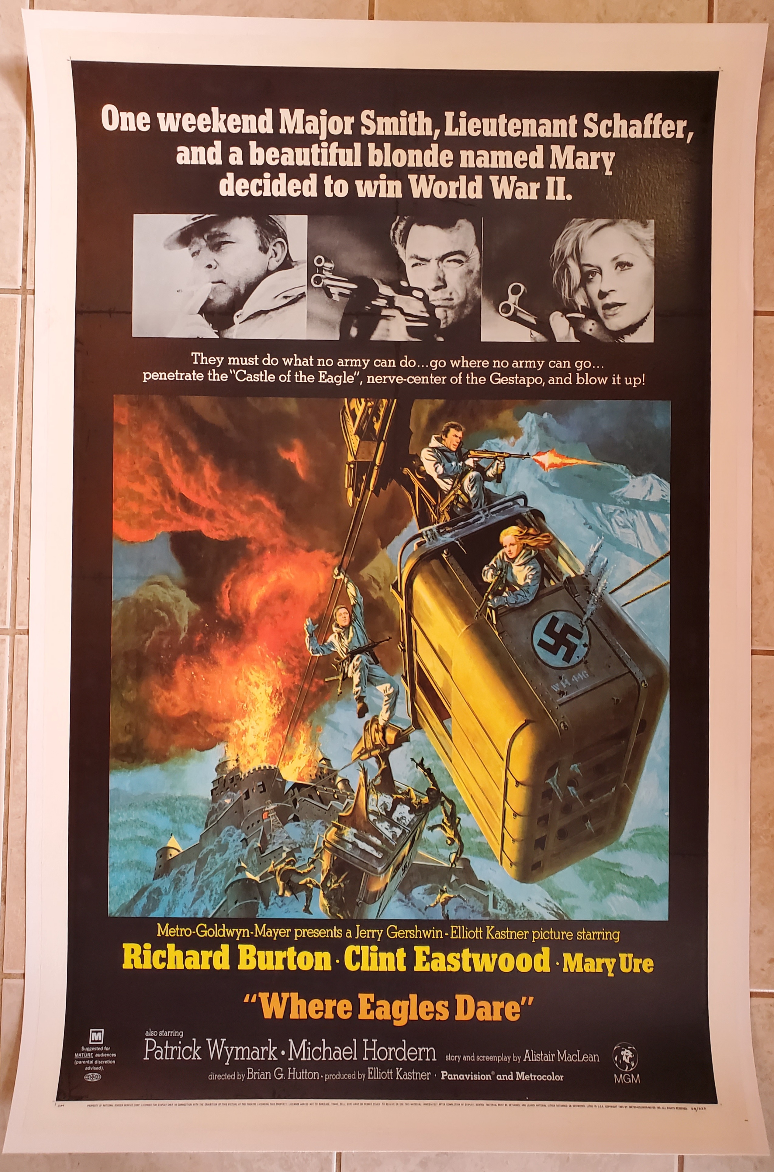 Yes my collection of both movies and movie posters continues to grow though I did slow down with the poster collecting but that was mainly due to the closures of memorabilia shows where I sometimes find a one sheet or lobby card that I just have to have. Still I did score a few and had this 1968 Where Eagles Dare linen backed thus bringing it back to life.