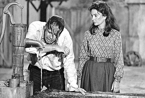 Always a fan of character actors and supporting players who make most every movie they appear in that much better, Rough Night in Jericho, is a treat in that we get both John McIntire and Slim Pickens on screen under Arnold Laven’s direction. McIntire scores a bullseye as the elderly lawman now looking to settle down but won’t be bullied by Dino. Just how an actor of McIntire’s worth could never once have been nominated for a Supporting Oscar baffles me. It’s the equivalent of not seeing Thelma Ritter actually win a Supporting Oscar despite six nominations. On the topic of Slim Pickens I’ll be the first to admit I much prefer him as the good old boy versus the no count heavy he enacts this time out though that fight between him and Peppard is maybe the highlight of the film’s action sequences.