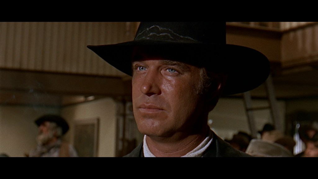 Like many westerns of this plot development, the heavy begrudgingly likes the new man in town. A stoic presence who represents what he was at one time in the distant past. Peppard can’t be bought off and isn’t to be taken lightly. Under different circumstances the two men might have been fast friends. As it is they are heading towards a violent clash against each other.