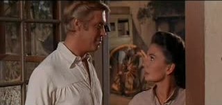 Then there’s this one. Peppard asks, “Been a widow long.” Jean responds, “Not long enough for it to bother me so don’t let it bother you.” Yes Varinia the Slave Girl … excuse me Miss Jean is playing it strong and feisty.