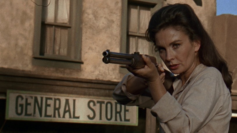 I still have a hard time excepting Dean Martin as a villain and to see him manhandle Jean Simmons with some violent slaps just doesn’t seem right to me. I’m going to try and banish those memories from my mind. Peppard however is right in his wheel house here and is more than capable of playing the frontiersman one doesn’t toy with.