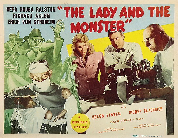 It’s Curt Siodmak’s Donovan’s Brain from Republic Pictures that subs in Erich Von Stroheim for Karloff or Lugosi. Take your pick. Richard Arlen gets the lead role opposite studio favorite Vera Ralston. George Sherman directs what proved to be a decent thriller of the period and for me a first time viewing.