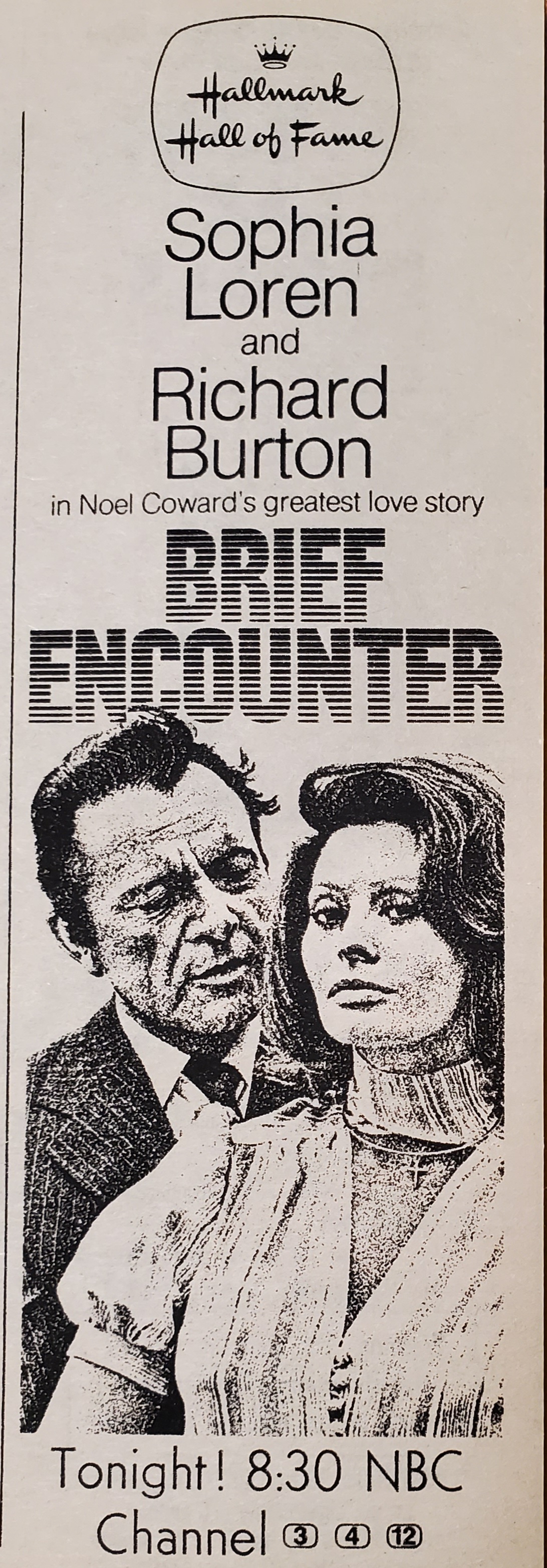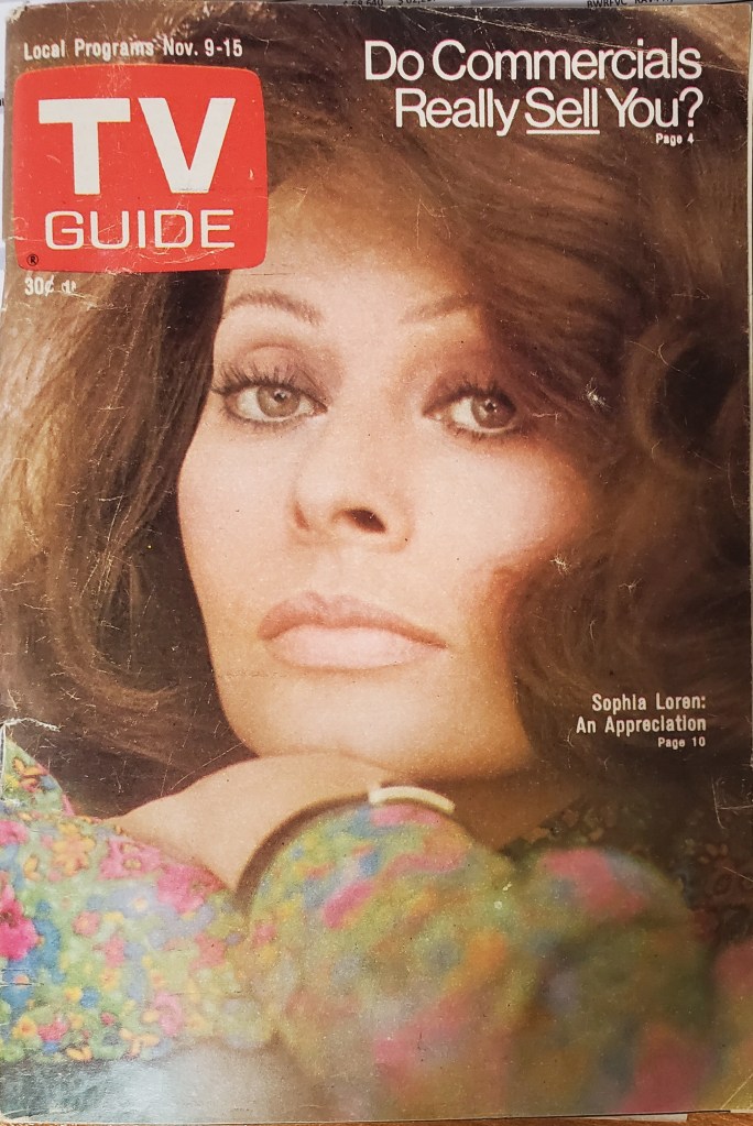 The Guide I selected for now is dated November 9th through to the 15th of 1974 and featured none other than Screen Legend, Sophia Loren, on the cover. Inside is an article devoted to her appearing in an updated version of Noel Coward’s Brief Encounter opposite Richard Burton. The article only reinforced my love of Miss Loren and how she has handled herself over a decades long career.