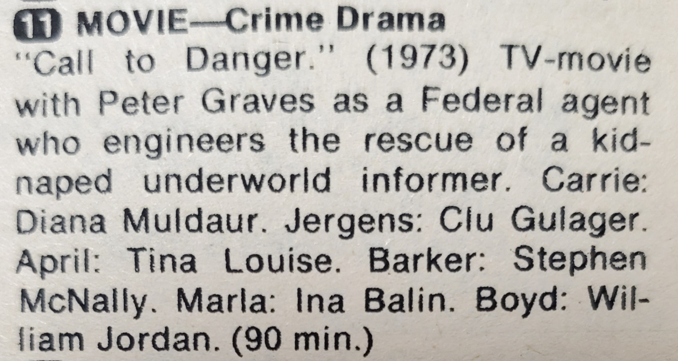 A cast of TV veterans led by Peter Graves would most likely have caught my eye to sit in on “Call to Danger.”