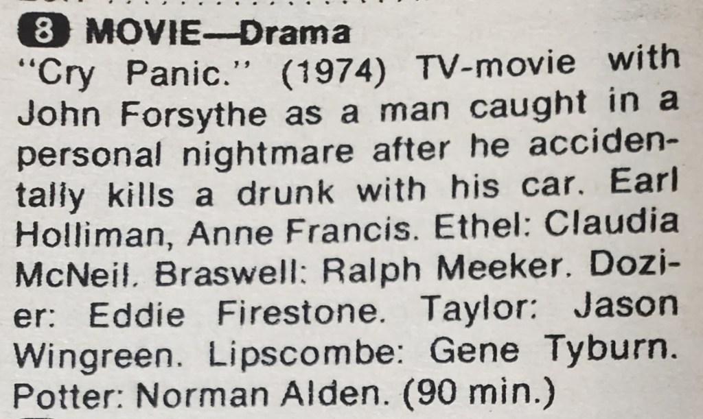 Kung Fu, Movin’ On and Jacques Cousteau on a Thursday evening or how about the latest telefilm to star John Forsythe with the always solid Earl Holliman costarring?