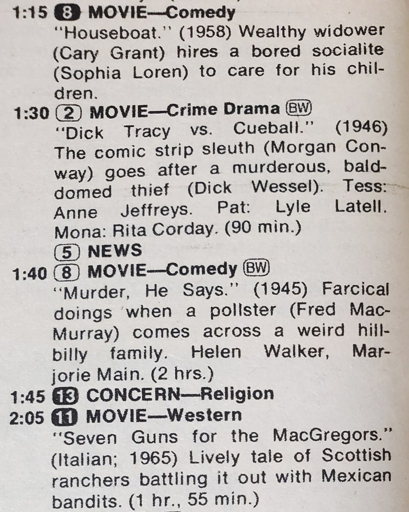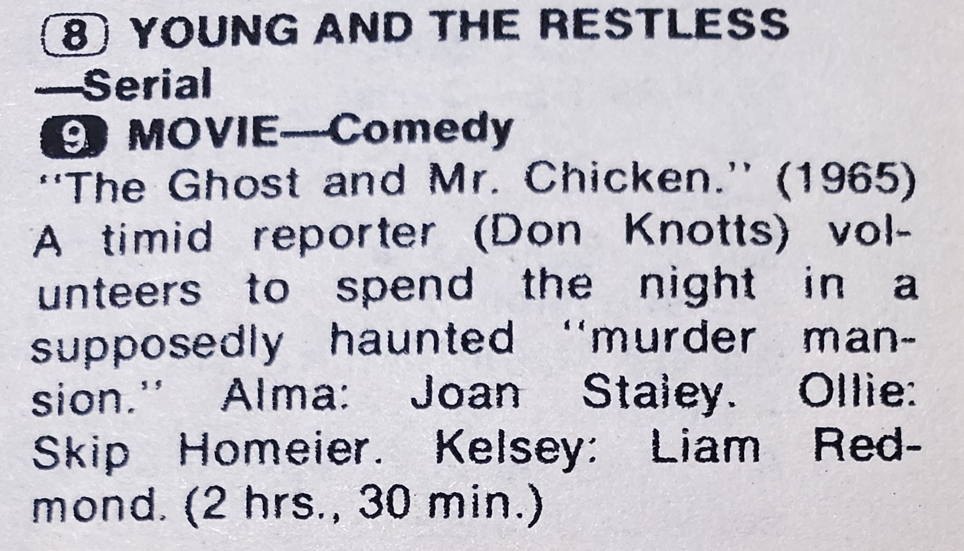 The Y&R at 1 PM or a daytime showing of a Don Knotts favorite? Easy decision though that running time of 2 1/2 hours means there’s a whole hour of commercials included!!! That’s insane.