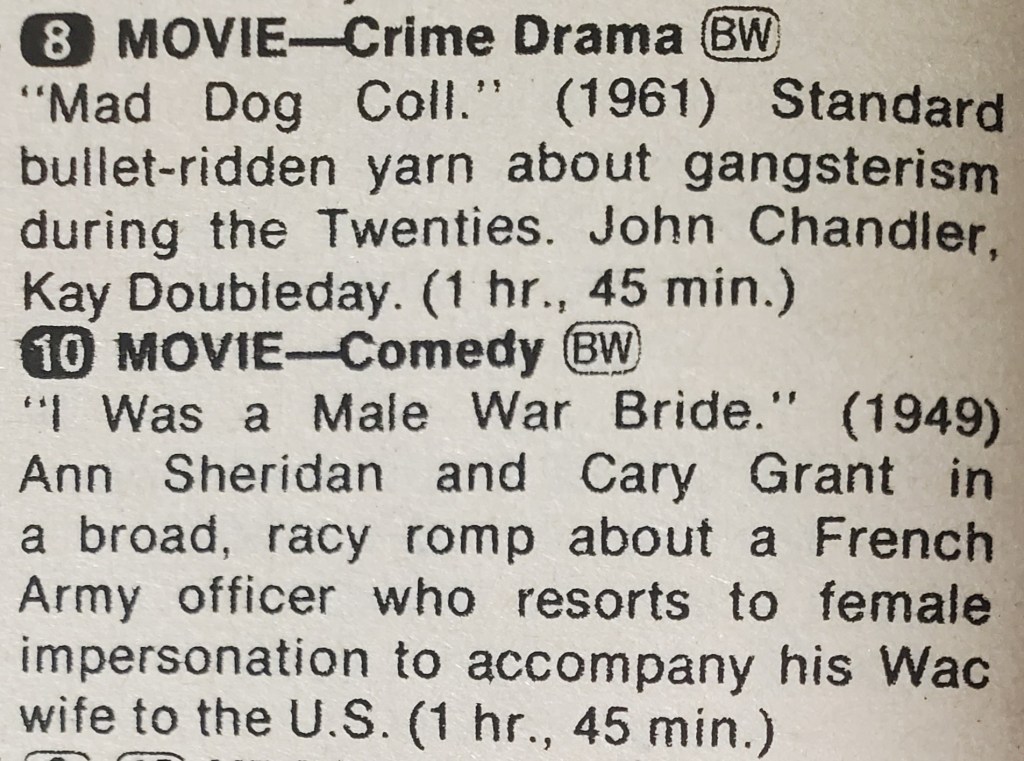 How about an afternoon movie to kick off your day. Ann Sheridan PLUS Cary Grant or John Davis Chandler soloing? Kind of unfair to Mr. Chandler don’t you think?