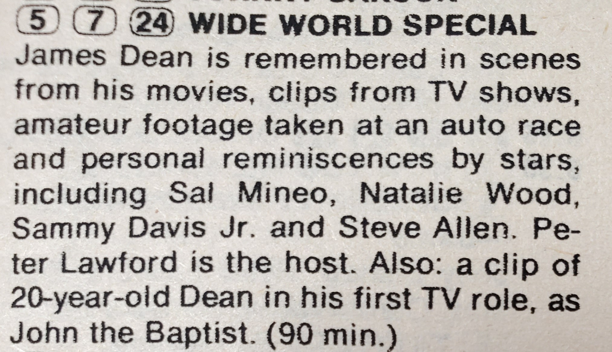 To this day James Dean still remains a cult figure just as he was back in 1974 with this TV special. Note Sal Mineo’s participation who at this time was still alive prior to his being murdered in February of 1976.