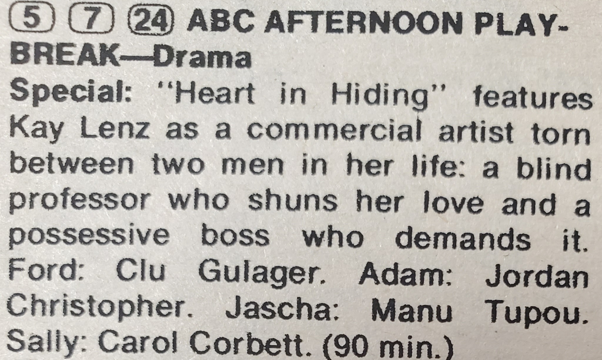 Reruns of Gomer Pyle, I Love Lucy and Dick Van Dyke can fill your morning but I’d be curious to see this afternoon special starring Kay Lenz.