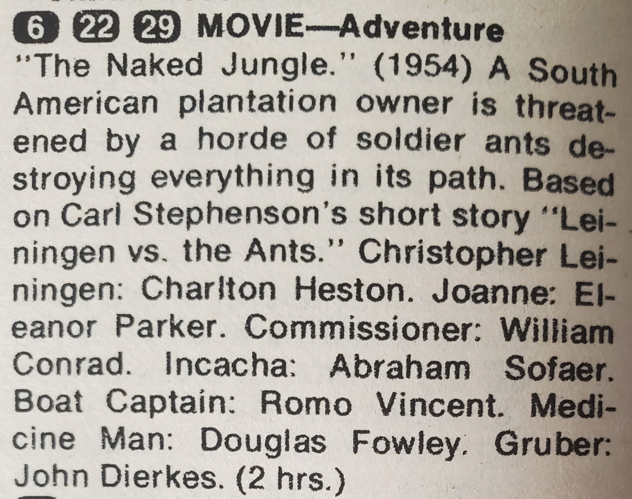 I know I was introduced to Heston and the 1953 film The Naked Jungle at an early age, could this have been my first viewing in a 6:30 time slot?