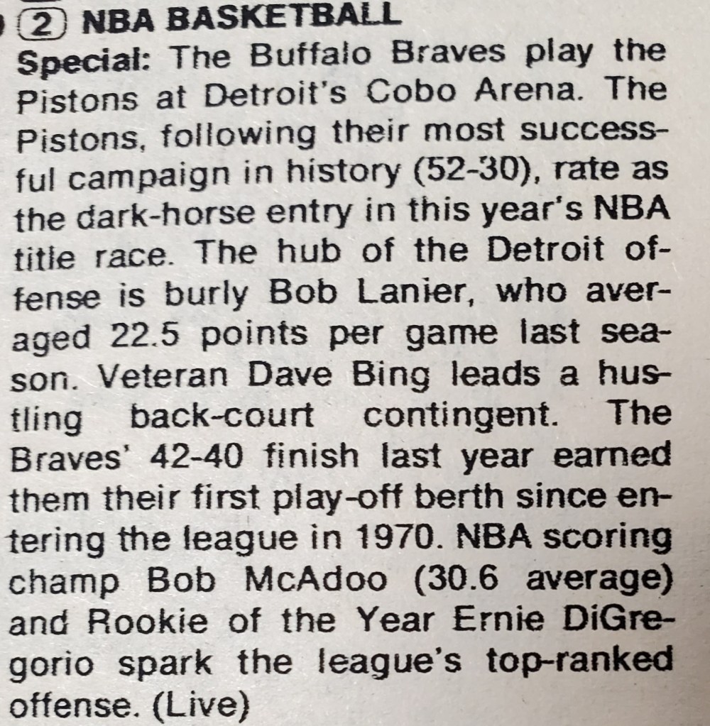 For the sports fan how about an NBA game featuring the Buffalo Braves?????