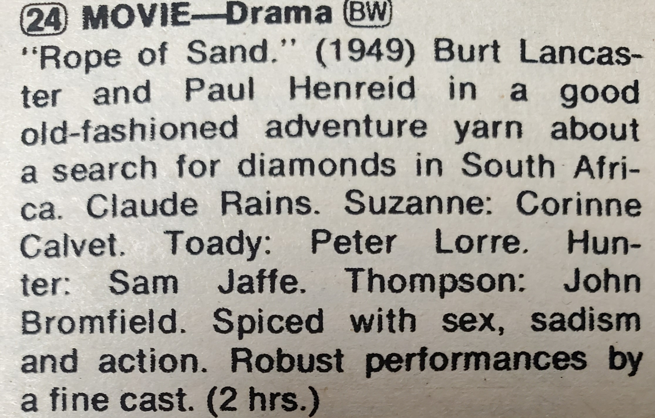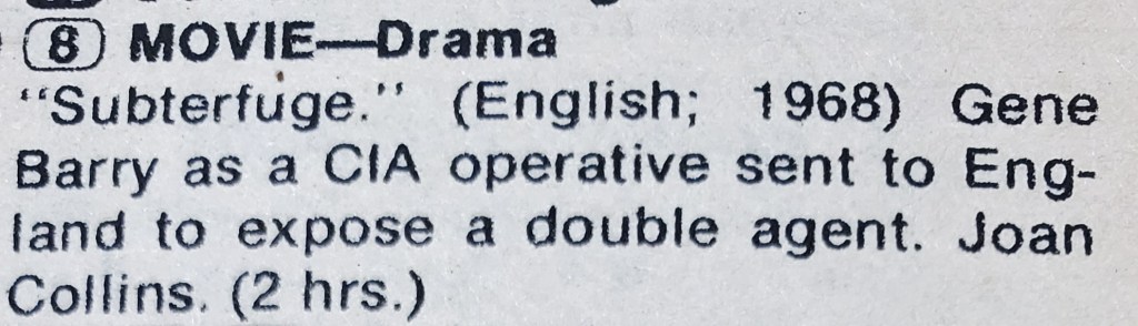 As for the late night hours here’s a title I’m not familiar with that sounds like one I need to locate with Gene Barry and Joan Collins.