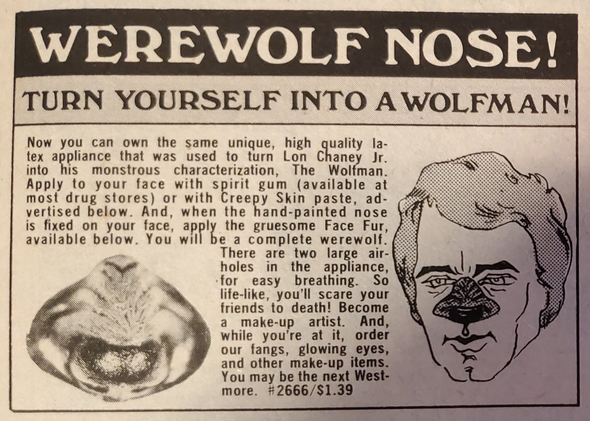 For just $1.39 why not order yourself up a Wolf Man Nose that would have made Lon Chaney Jr. proud.