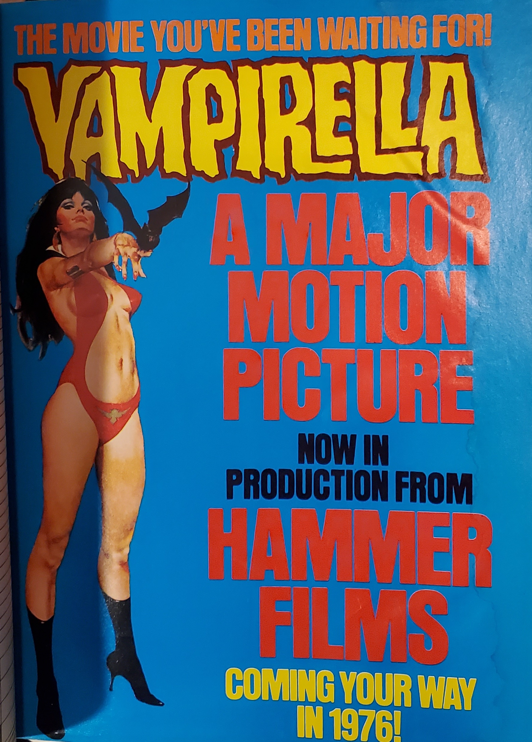 Lastly on the inside cover is the main reason I opted to feature this January issue of a few choices I had on hand. It’s a full page ad in color of an all new Hammer Film that wasn’t meant to be. Not sure if it’s 100% accurate but I have read that the role was to be played by Caroline Munro or perhaps she was at least one of the leading contenders to take on the role of Vampirella.