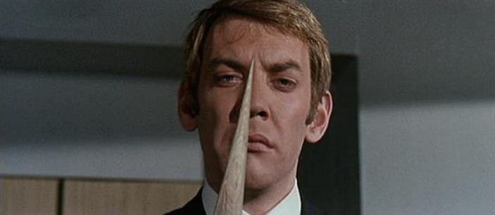 Donald Sutherland was two years away from landing the part of Pinkley in The Dirty Dozen. A role that would seriously change the trajectory of his career with hits MASH, Kelly’s Heroes and Klute not far behind. New on the scene he had just made his screen debut opposite Lee in 1964’s The Castle of The Living Dead. In two separate roles no less!