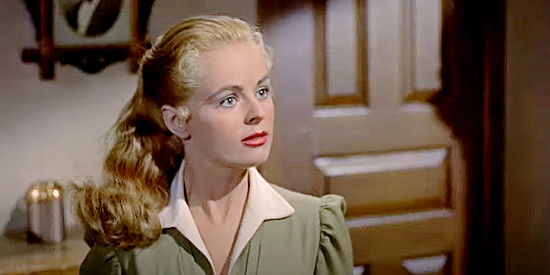 Our leading man will take refuge in a cellar that turns out to be the home of Miss Murphy and her father, Sheriff Ward Bond. 28 minutes into the film and Milland will finally exchange dialogue when confronted by Murphy. She seems to find the stranger in her home adventurous displaying a playfulness with him until she’ll learn of the stagecoach massacre and Milland is the supposed killer. As for Bond, he’s down with yellow fever and bedridden for the first hour of the film’s 96 minute running time.