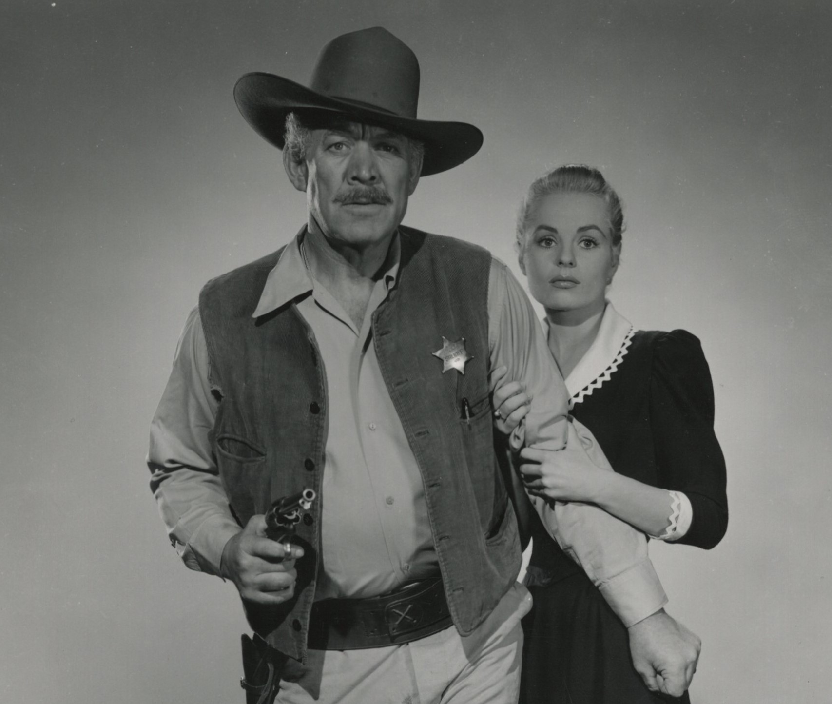 As for our heavies, Burr and Van Cleef, this film offered them a reunion of sorts. Just two years earlier they played similar roles in a period piece, The Bandits of Corsica. Burr the chief villain with Van Cleef as his right hand man trying to stop swordsman Richard Greene from reclaiming his rightful lands and title. The boys don’t fare to well in the final reel of either film. But then you all know that going in. Burr was playing baddies and mired in most any genre from costume pics to westerns to noir efforts and even a Lex Barker Tarzan adventure. That would all change when Perry Mason came his way. As for Van Cleef, the man was a workhorse in the 1950’s following his screen debut in High Noon. He went on to appear in countless westerns and TV shows. I’ve no idea how many times he was killed on screen but he must have been a leading contender for death scenes during the decade and beyond.