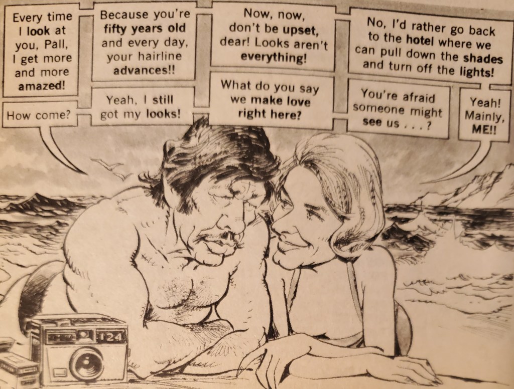 Not confining itself to a lampoon of Death Wish, this edition also gives the reader a goofy rendition of the Omar Sharif/Julie Andrews spy thriller, The Tamarind Seed rechristened The Tommy-Red Seed.