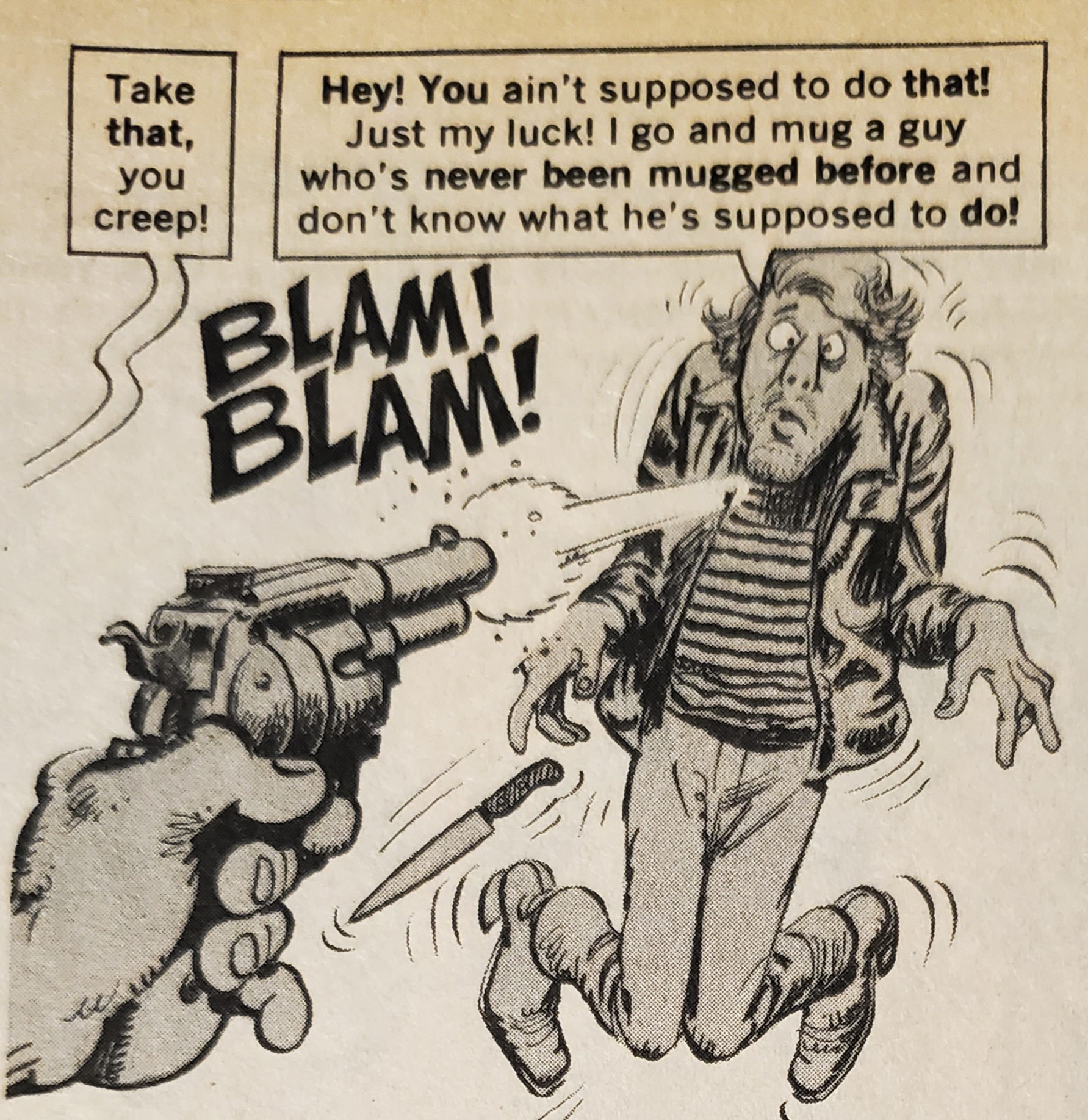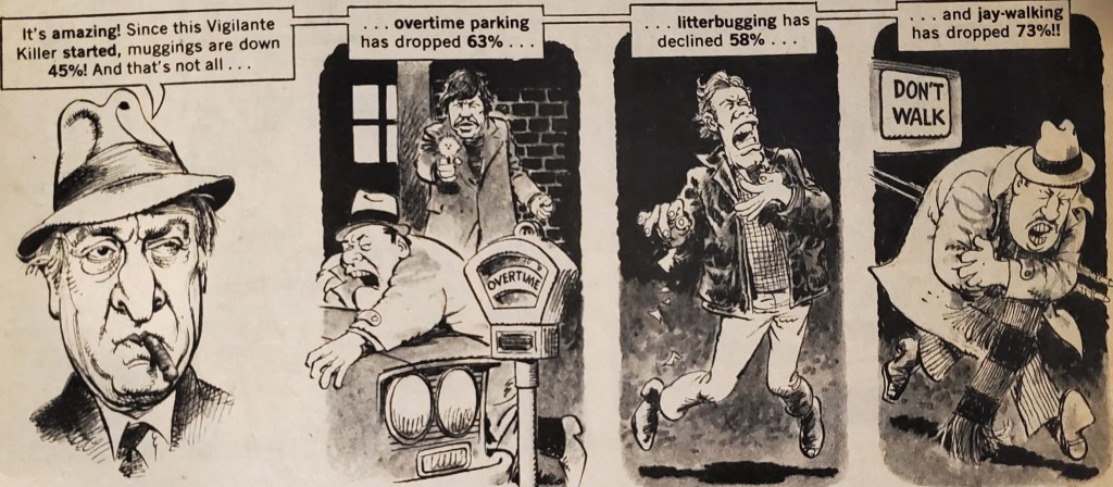 Your Price 25 Cents…Really Cheap! Thanks for the trip down memory lane…I haven’t read a Mad magazine in decades, though I did all the time when I was a kid. I always liked the movie and TV parodies the most, and these ‘Death Wish’ panels remind me why. Now I need to track down the ‘Jaws’ issue!
