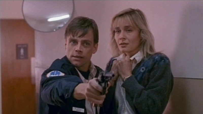 Low budget affair from Cannon as the company was on the verge of financial ruin that stars Michael Dudikoff as a cop tracking a crazed killer, Mark Hamill, who has taken his wife as a hostage while on a road trip to visit his psychiatrist. Plenty of blood in this flick that combines elements of both slasher films and Rutger Hauer’s Hitcher. Hamill makes for a real creepy psycho and deserved a better flick for his performance. Now for the real reason I finally checked this one out. It’s one of the final film appearances by the legendary Robert Mitchum. Mitch probably only worked a day or two to collect his paycheck playing Hamill’s Doctor. No big deal but would fit nicely on a blu ray edition from the likes of Vinegar Syndrome.