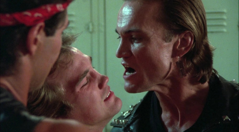 No doubt the film has developed a cult following so maybe if I’d seen it in my teenage years I’d like it better than I did. I mentioned the superior Class of 1984. I did indeed see that in the theater and thought it was a great 80’s answer to 1955’s Blackboard Jungle and still do. Savage Streets less so. With the amount of nudity on hand and full frontal gals fighting in the showers maybe the scriptwriters should have gone for a Porky’s styled comedy instead. Kind of like those stories Tom Green tells in Road Trip about his college experiences.