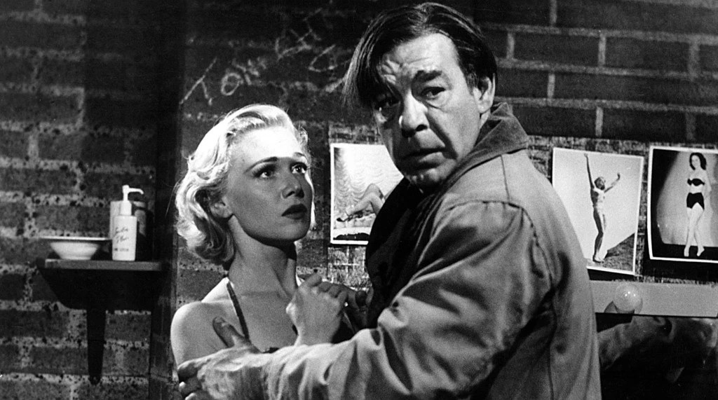 I’d call this “The Greatest Horror/Gangster flick since 1940’s Black Friday.” I know, that’s not much of a recommendation. Career criminal, a very weathered looking Lon Chaney Jr. is sent to the electric chair but thanks to a wacky scientist and Disney fave Joe Flynn he’s brought back to life to go hunting down the three men who crossed him leaving him to take the fall and the death penalty. If it weren’t for the horror element you’d think you were watching a low budget revenge themed noir with the voice over narration to back it up. Lon even kills a man in the famed Bradbury building where dozens of famous movies have been shot.