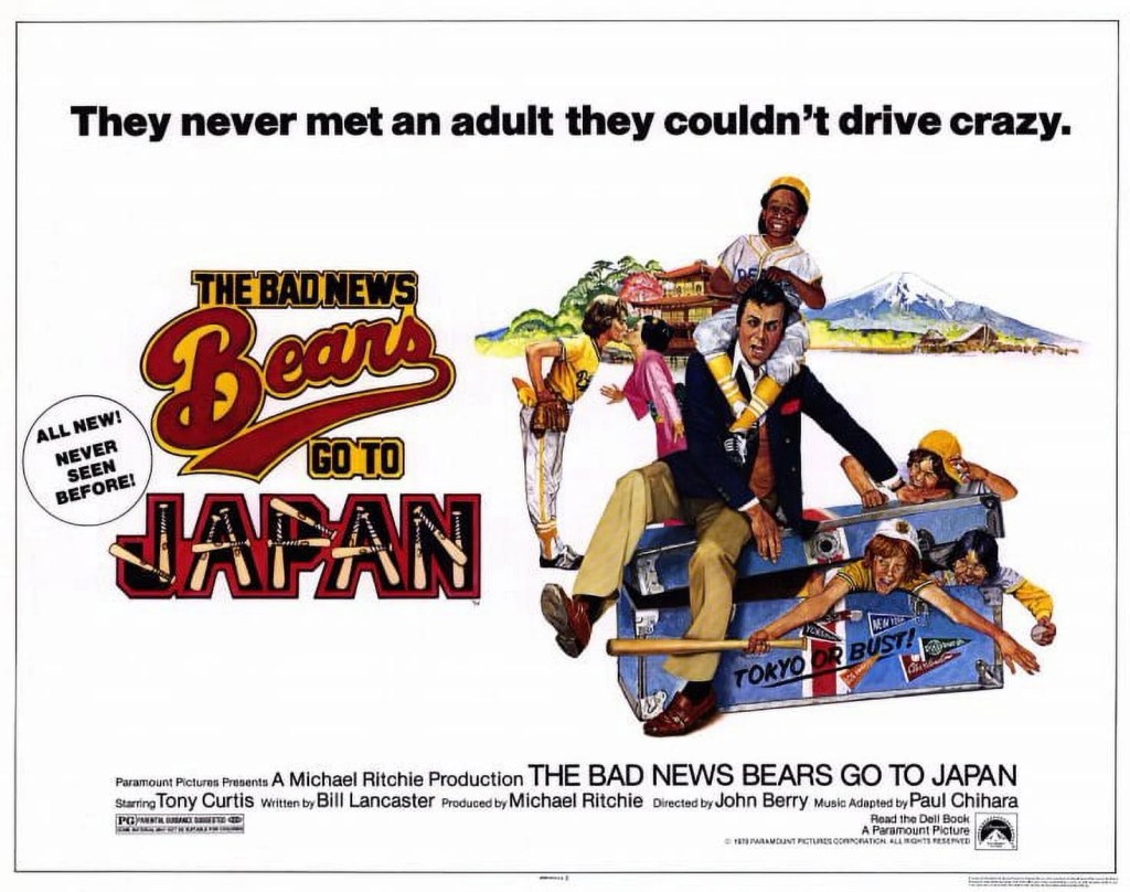 “Back when I was just a lad” the popularity of The Bad News Bears on the big screens in the late 1970’s allowed me to see the pint sized ball club and their shady manager, Tony Curtis, go to Japan for more hijinks and comical escapades in the third and weakest film of the original trilogy. The movie’s little league team had captured the hearts of audiences when the series kicked off starring Walter Matthau going toe to toe with both his star pitcher, Tatum O’Neal and the opposition’s manager, Vic Morrow. This trip to Japan is far from memorable but when you’re just a kid and the Bears are wrestling a giant sized Sumo wrestler you’re bound to enjoy the journey. Now as an adult it’s not such a memorable revisit. Think I’ll just stick to Godzilla films or re-watch The War of The Gargantuas.