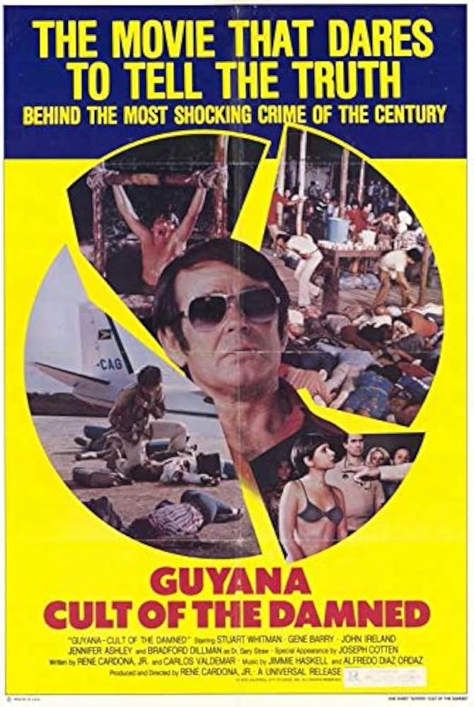 “The movie that dares to tell the truth!” That might be but the names may have been changed in 1979’s Guyana: Cult of the Damned. It’s a thinly veiled retelling of the Rev. Jim Jones story that resulted in the deaths of over 900 people caught up in a religious cult. Stuart Whitman plays the lead under the name James Johnson in Rene Cardona Jr.’s exploitative film that brought in a number of aging Hollywood names from both movies and television to partake in this effort meant for the drive-in fans. Among them you’ll see Bradford Dillman, Joseph Cotten, Gene Barry, John Ireland and Canada’s own Yvonne De Carlo. Even a favorite of Tarantino’s is in here, Mr. Hugo Stiglitz.
