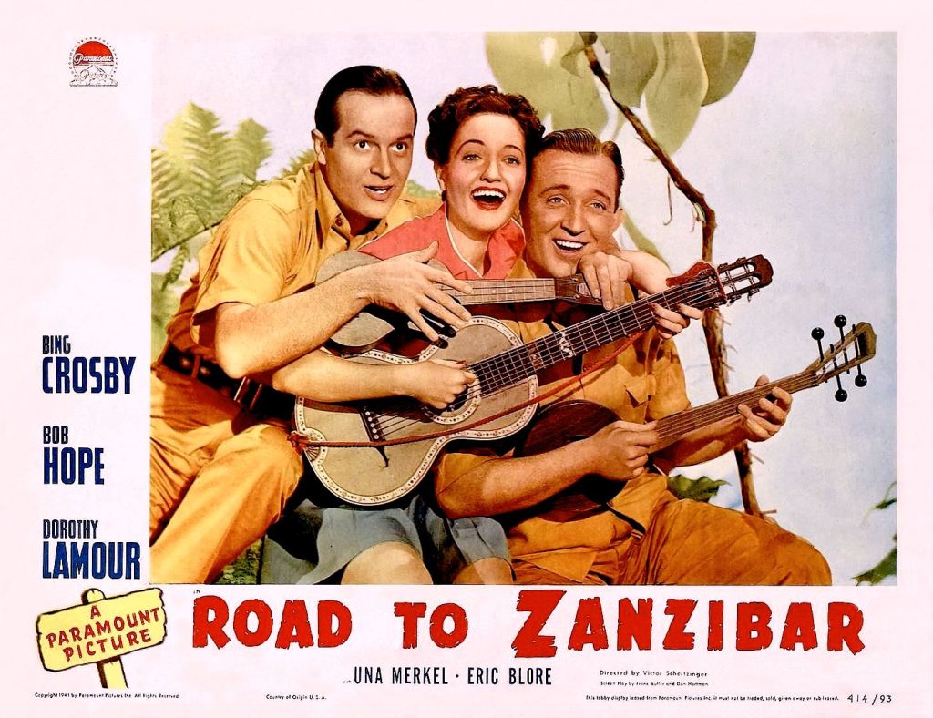 Z is for …. Zanzibar. The Road to Zanzibar (1941). Thankfully Bob Hope and Bing Crosby travelled to far off places looking for adventure and more importantly, Dorothy Lamour, even if they never actually left the Paramount backlot. It was the second of the trios seven road pictures that started with 1940’s Road to Singapore and ended in 1962 on The Road to Hong Kong.